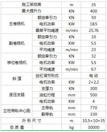 | 卷扬机系统由提升卷扬机、副卷扬机、移位卷扬机组成。 |